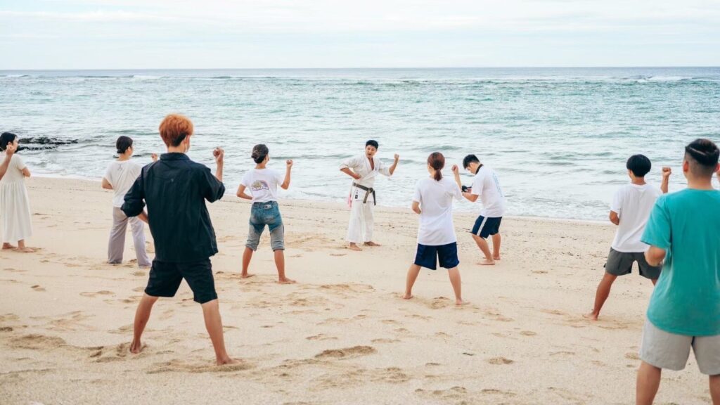 沖縄は空手の発祥であり、今でも脈々と伝統空手が受け継がれています。今や空手は世界に広がる平和の武術として認められています。ちゅらむら読谷では、沖縄伝統空手の技と精神に触れ、沖縄文化をより深く知るプログラムを実施しています。受け継がれる伝統文化であり、沖縄に根ざし国際的な広がりを持つ沖縄伝統空手の世界はまさにグローカル(グローバルに考え地域に根ざしてアクションを起こす)思考を学べる学習の宝庫です。